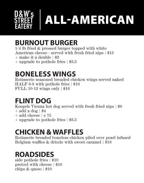 THE ALL-AMERICAN & CAFE DRINKS MENUS CAN BE ADDED ALONGSIDE OUR PRIMARY TACO MENU BY REQUEST.